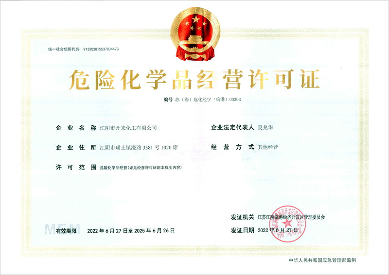 江阴市开来化工有限公司,位于江苏省江阴市,这里是长三角经济发展区的核心地带,有着良好的商业基础、铁路、公路、水路运输极为便利,淳朴厚道的民风。